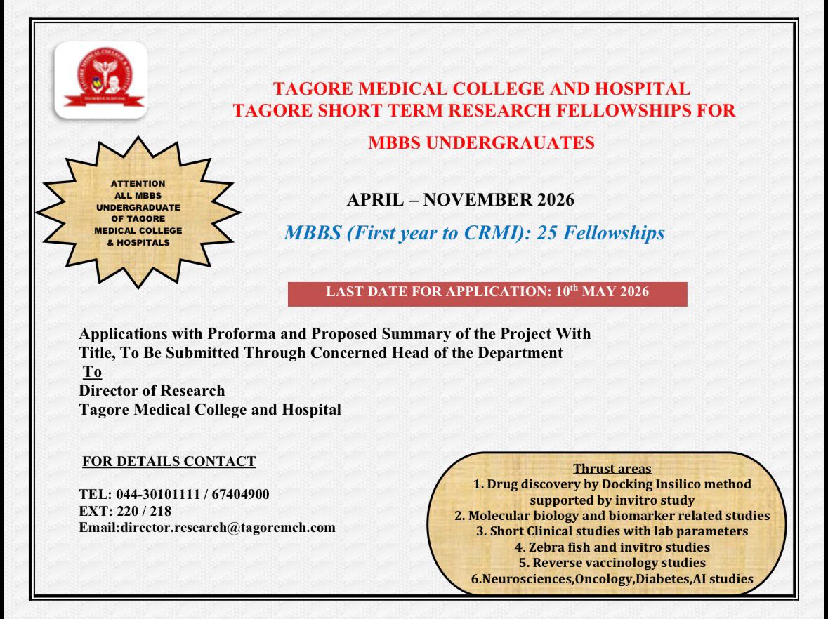 My UG days in Tagore was one of the best part of my life , Tagore has fulfilled my dream of becoming a Doctor without which I couldn't have achieved this feat.